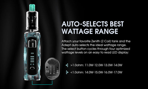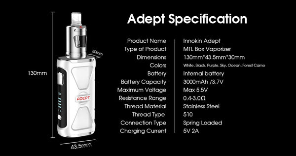The Innokin Adept Kit is a box mod style kit from Innokin featuring the Zlide tank. This kit is compatible with all Zenith coils. The Adept Kit is built to...