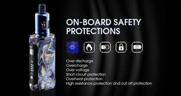 The Innokin Adept Kit is a box mod style kit from Innokin featuring the Zlide tank. This kit is compatible with all Zenith coils. The Adept Kit is built to be sturdy and robust, the Adept Mod is IP67 waterproof (spray and immersion), shock proof and dust proof. The adept is paired with the popular 2ml Zlide tank giving great flavour from Innokin's Z-coil range.