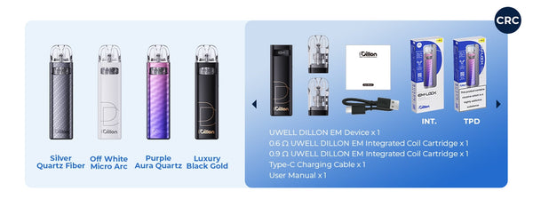 Cartridge Specifications: FeCrAl Meshed 0.6ohm Uwell Dillon EM Integrated Coil Cartridge, FeCrAl Meshed 0.9ohm Uwell Dillon EM Integrated Coil Cartridge