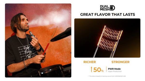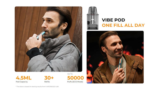Vaporesso Vibe Pod System is equipped with the latest VAPORESSO Dual Mesh technology, which enhances the flavor and lifespan of the pods while ensuring safety and reliability.power by built-in 1100mAh...