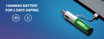 The Joyetech eGo Pod Kit 1000mAh for you! The design philosophy of Joyetech eGo Pod Kit is Easy is Perfect! The Joyetech eGo Pod Kit adopts integrated circuit for stable current output and long lifespan. And the Joyetech eGo Pod system is powered by 1000mAh inbuilt battery which can provide 3.7V constant voltage with constant flavor. In addition, the Joyetech eGo Pod comes with 2ml juice capacity and 1.2ohm coil. Featuring Child-lock Design and easy to refill, the Joyetech eGo Pod Kit will bring you a safe and wonderful vaping experience.