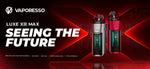 Vaporesso LUXE XR Max Kit which innovative COREX heating technology, Luxe XR Max Kit power by built-in a 2800mAh battery with Max 80W output and Type-C charging. Supported by the COREX heating technology and AXON Chip, it can ensures faster heating, boosted flavor and bigger clouds. It adopts the 0.4ohm/0.2ohm Mesh LUXE X Pods with customized drip tips for MTL/DL experience. You can easily switch the pod to adjust the airflow from MTL to DTL. Its slim & crystal clear body with 3 layers of coating is durable enough to resist daily abrasion & dropping. Moreover, its auto lock function will lock the device after 8S pressing and secured mode to protect from accidentally misfiring.